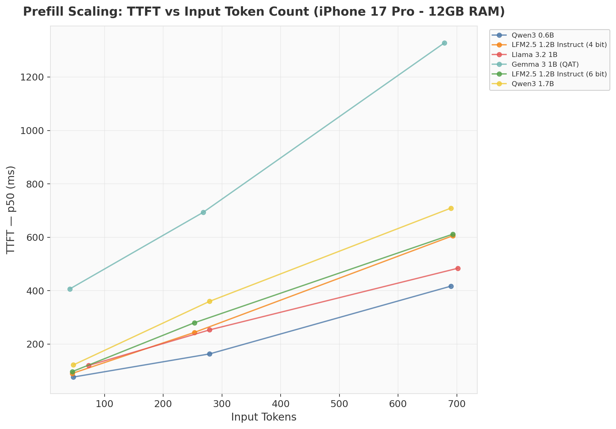 Model architecture matters more than parameter count (for mobile). Gemma 3 1B is slower than Qwen3 0.6B despite being larger. LFM2.5 1.2B is faster than everything despite being one of the larger models.
