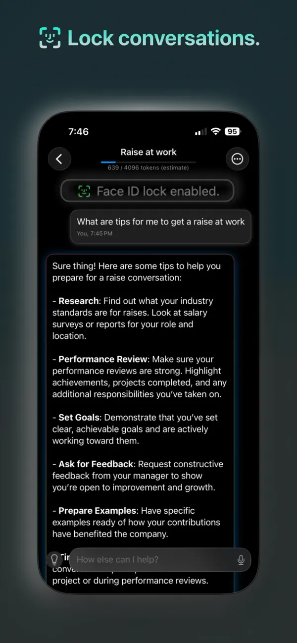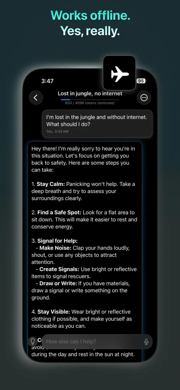 Privacy-first: Your messages and responses are visible to no one but you—not even the developer or Apple.